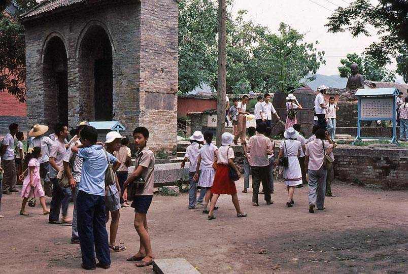 1983年的少林寺游客,从衣着扮上看,已经比较时髦了。只是当时的都比较清瘦,头发也浓密,和现在满街的“油腻哥”形成鲜明对比。