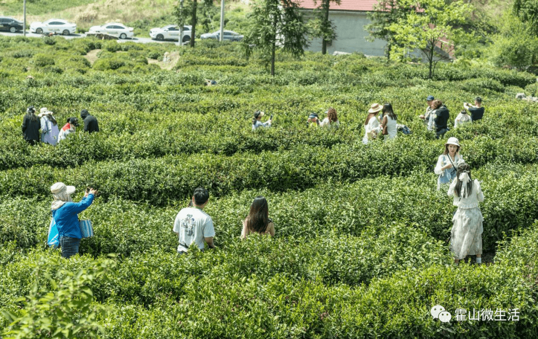 一叶香茗,氤氲磨子清香。茶叶是磨子潭镇的特色主打产业,此时正是霍山黄芽采摘炒制的黄金时节,路边一片青翠的茶园有农户们手指上下翻飞采摘新茶,茶园边搭了一座古朴的“园门”,门头上刻有“磨茗而来”四个苍劲有力的大字,自然生态与文艺气息相结合,俨然成了最新的“网红打卡点”,引得外地前来购买春茶的人们或三三两两或四五成群地来到门前拍照打卡,有的甚至还穿着古色古韵的旗袍,为的就是在亲近自然中拥抱山水茶园。