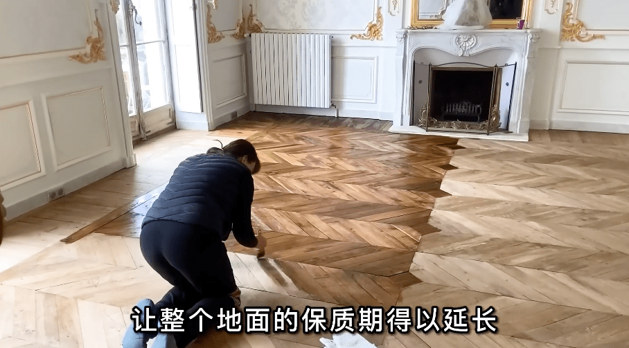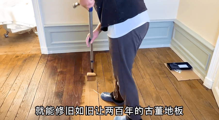 她先去其他屋子里转了转,寻找尚能利用的地板,然后用清洗机来回仔细清洁,再刷上全新的木漆。