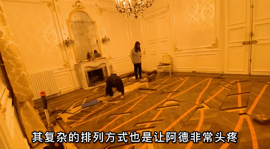 当然有不少已经缺失或破损到无法再利用的部分,在奔波市场寻找同款无果后,阿德决定自己动手——用新的木板一比一还原古堡地面。