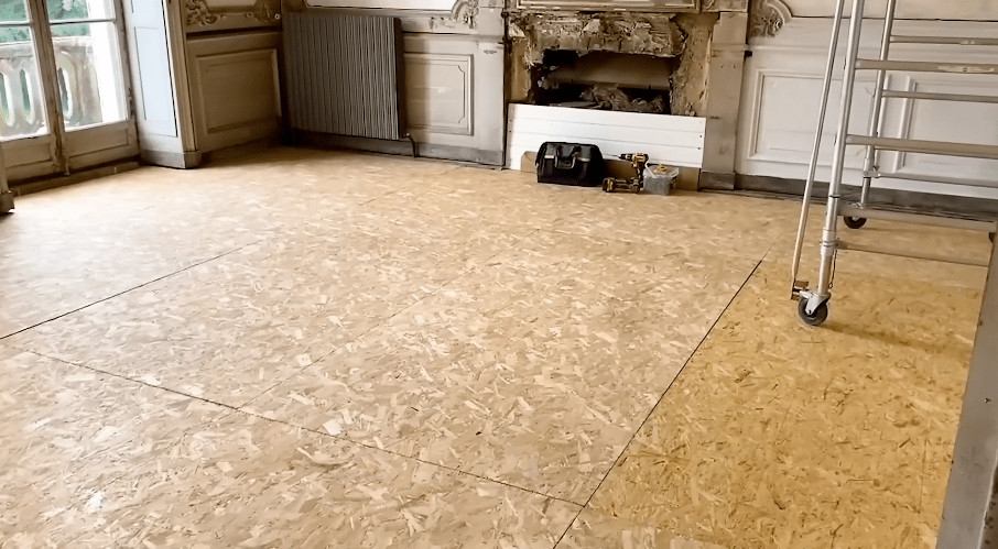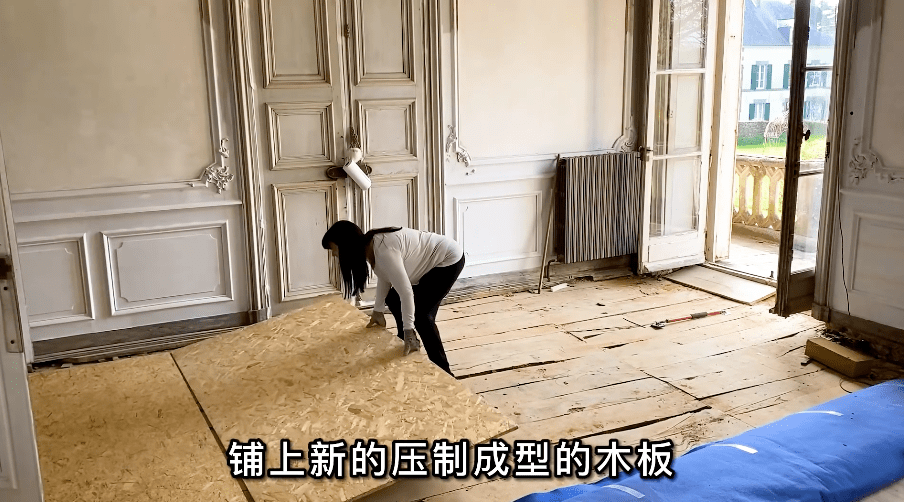 最稳妥的做法,其实是拆掉所有木板重新铺设。但出于节约成本考虑,两人决定直接铺上新的压制成型的木板。