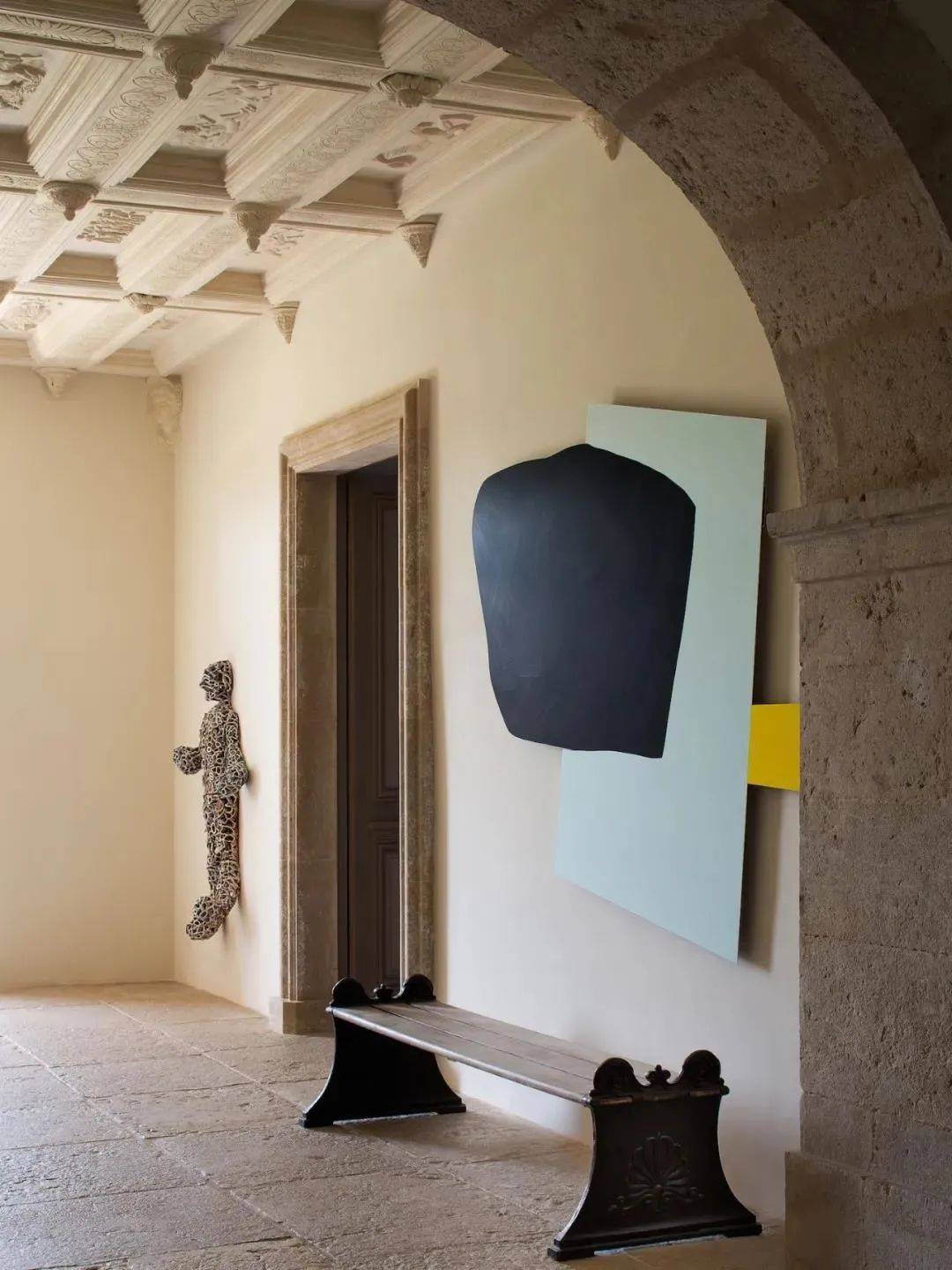 Chateau Fabregues是一座17世纪的老式城堡,土黄色的外立面极具年代感,趋近于锥形的吊顶上印刻的花纹精致而对称。