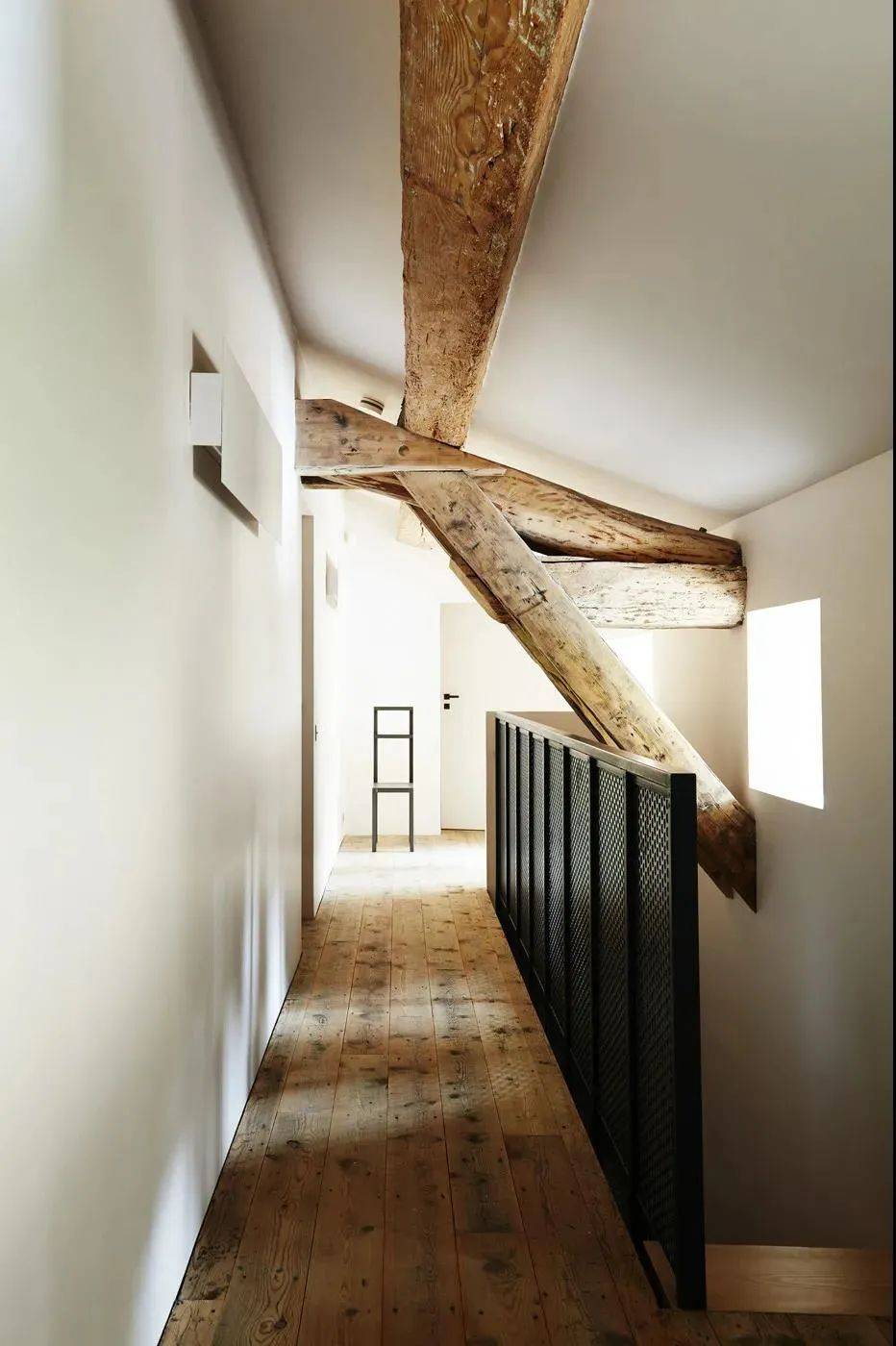 沿着走廊,随处可见各种带有纯天然的横梁;
