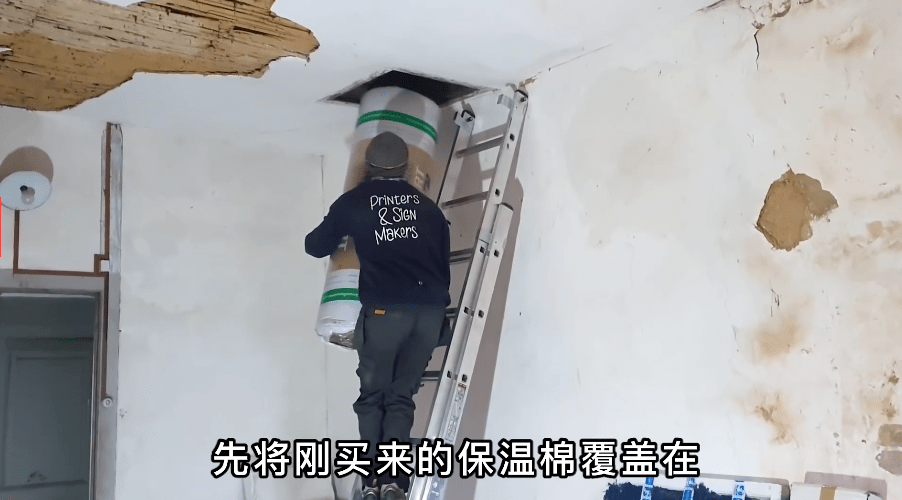 阿德在铺完水管和电线后,又同商家一起扛着刚买来的保温棉铺到了阁楼上,以保证室内的冬暖夏凉。
