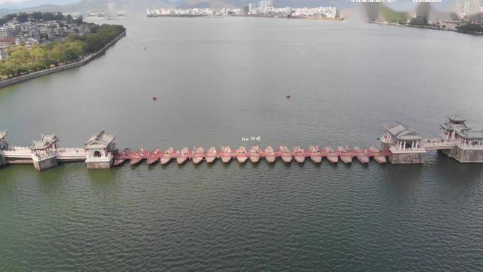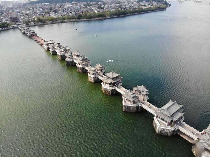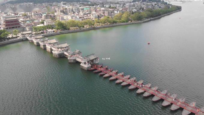 第二天白天我们才买票前往广济桥,相信在桥上又是另外一番感受。因为来的晚,浮桥已经合拢。航拍角度也是很震撼的,这座古桥就这么横跨宽阔的韩江,屹立千年。