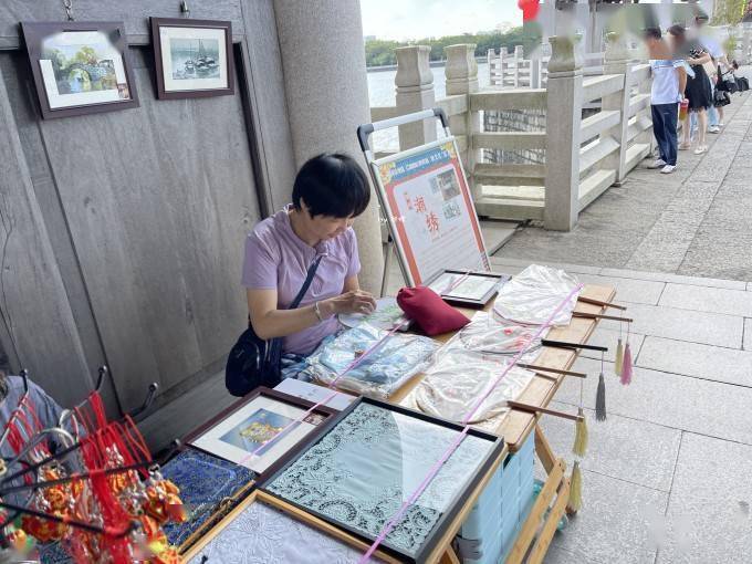 走在广济桥上,不仅可以亲近韩江、吹吹江风,还可以欣赏到非遗传承人现场做的潮绣、手拉壶,一饱眼福。