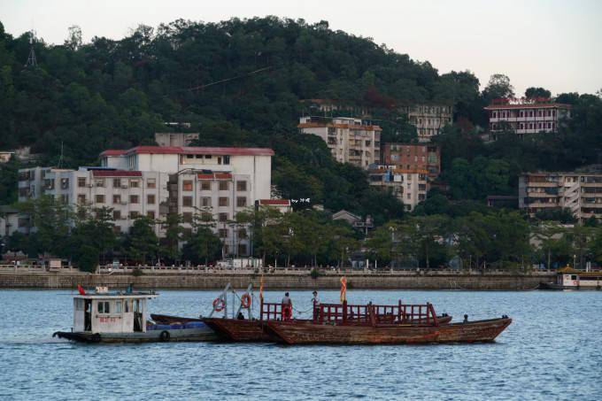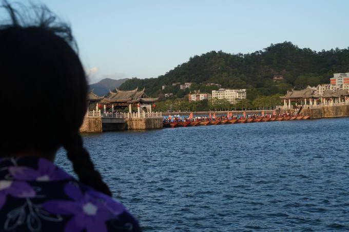 到达韩江边,这时候已经不合适买票上桥了(因为很可能走到对岸回不来),所以我们就来到岸边找位置,等待拆桥的到来。