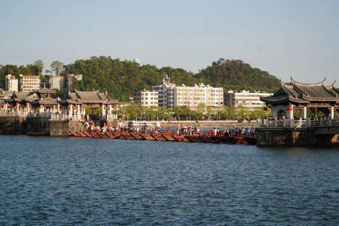 查资料了解到,广济桥始建于南宋,被誉为“世界上最早的启闭式桥梁”。我们现在看到的是修复后的桥梁,由十八支木船组成的浮桥和桥墩组成。广济桥早上合拢下午拆分,这样的场景每天都在上演。