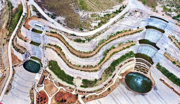 5月10日,记者在北票市中心城区南侧生态修复山体公园看到,原本是一座废弃的采石场,如今已是一座供市民休闲娱乐的公园。