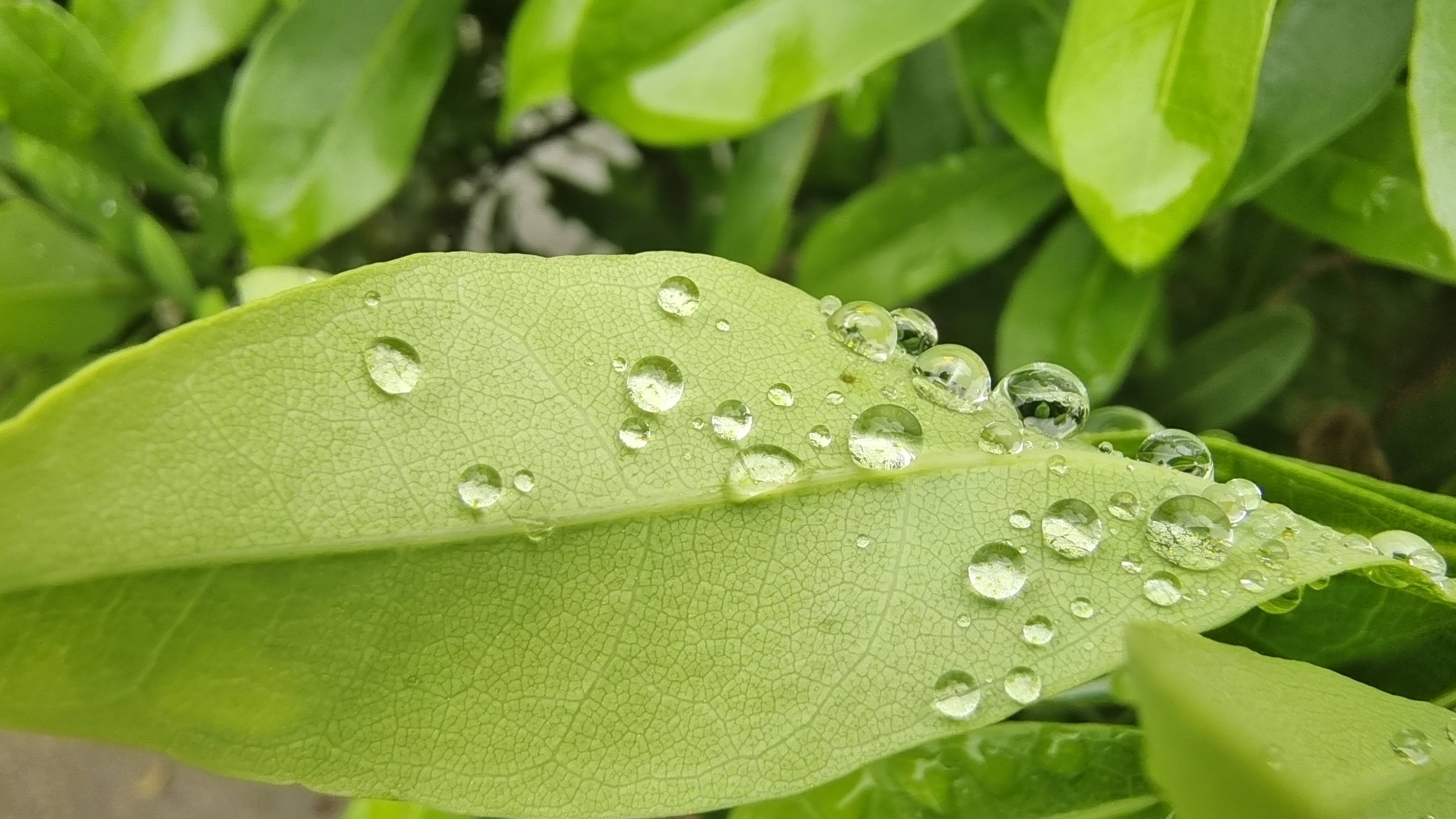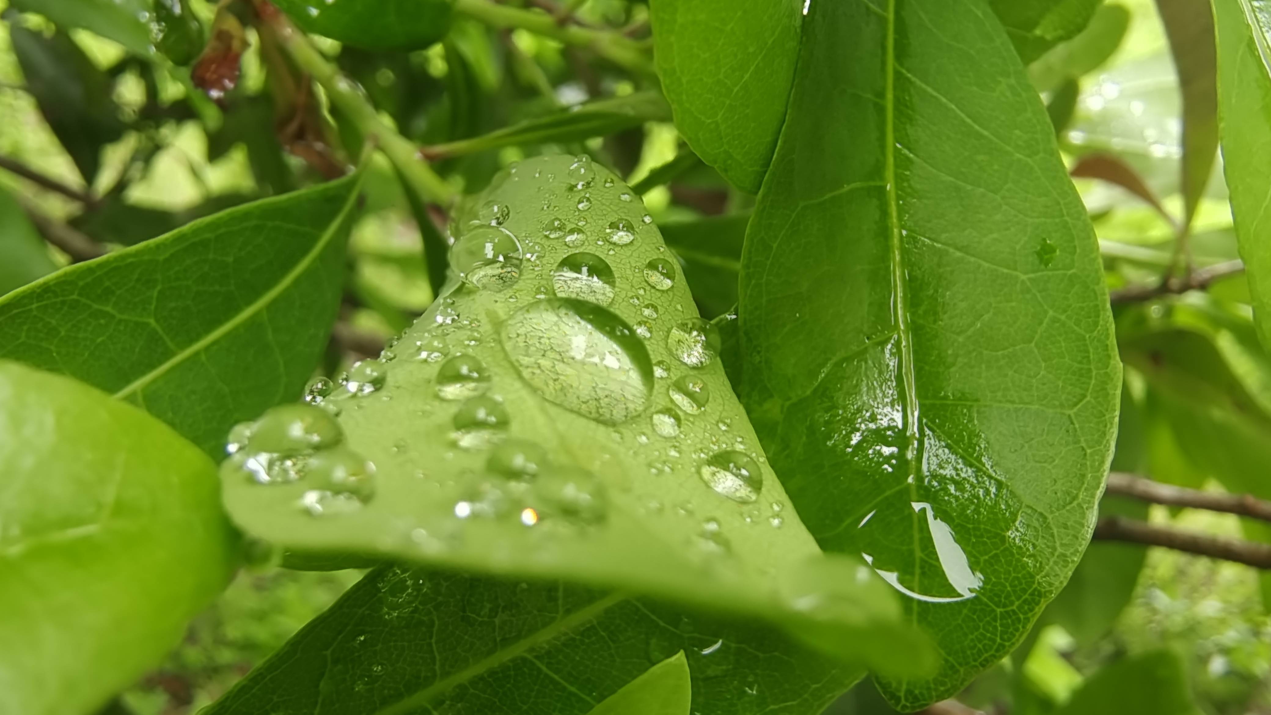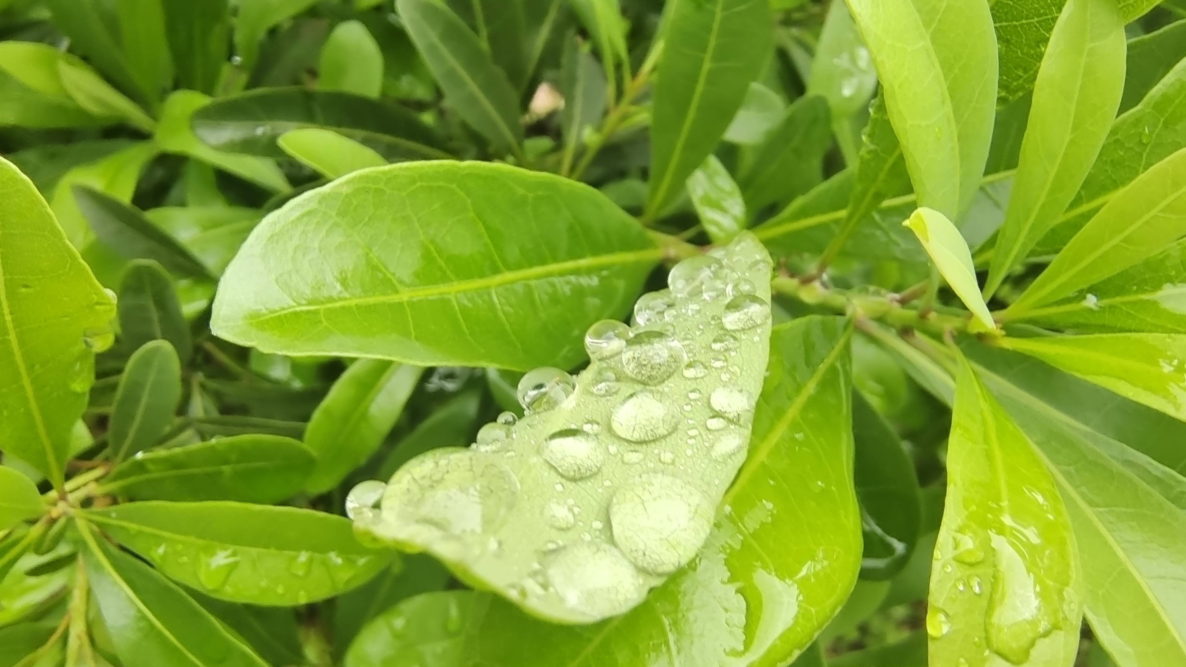 原标题:吉安随拍:杨梅树叶上的雨滴