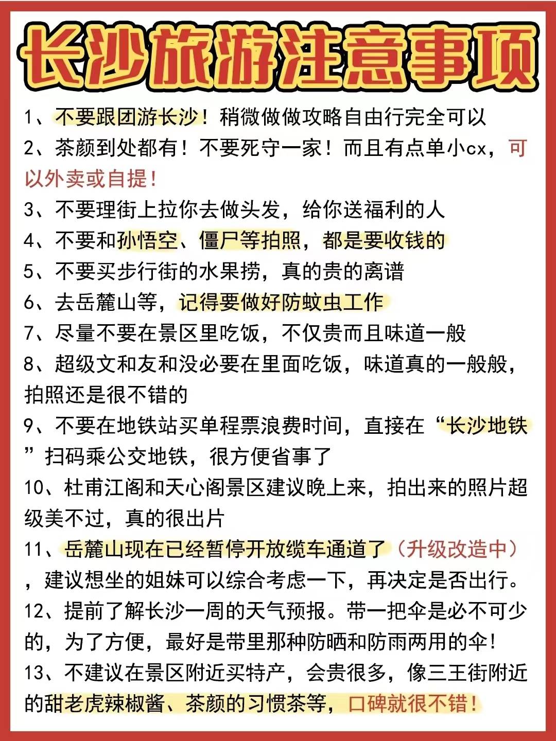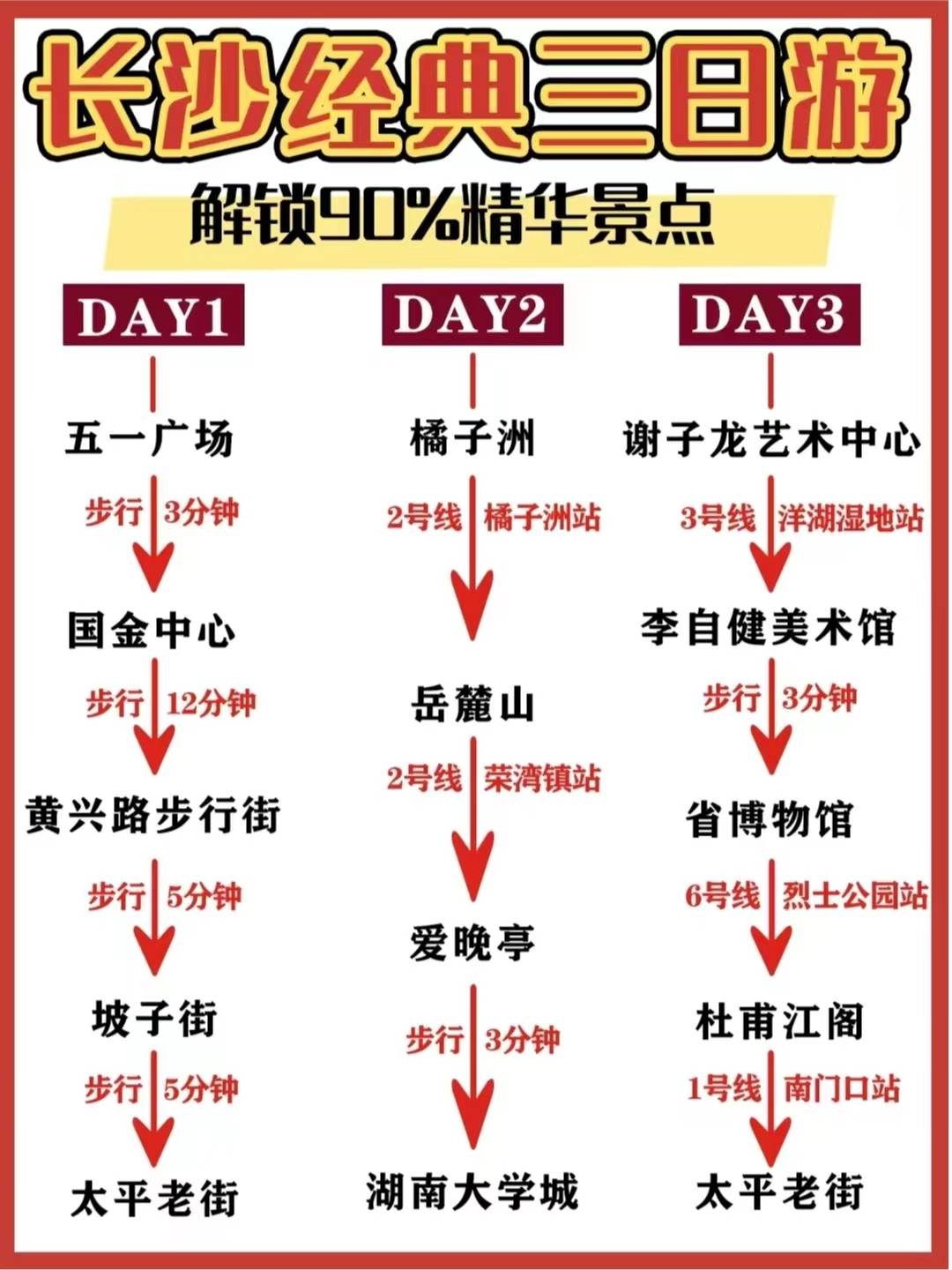 原标题:长沙经典️日游!全程无雷不走回头路~