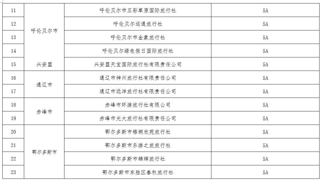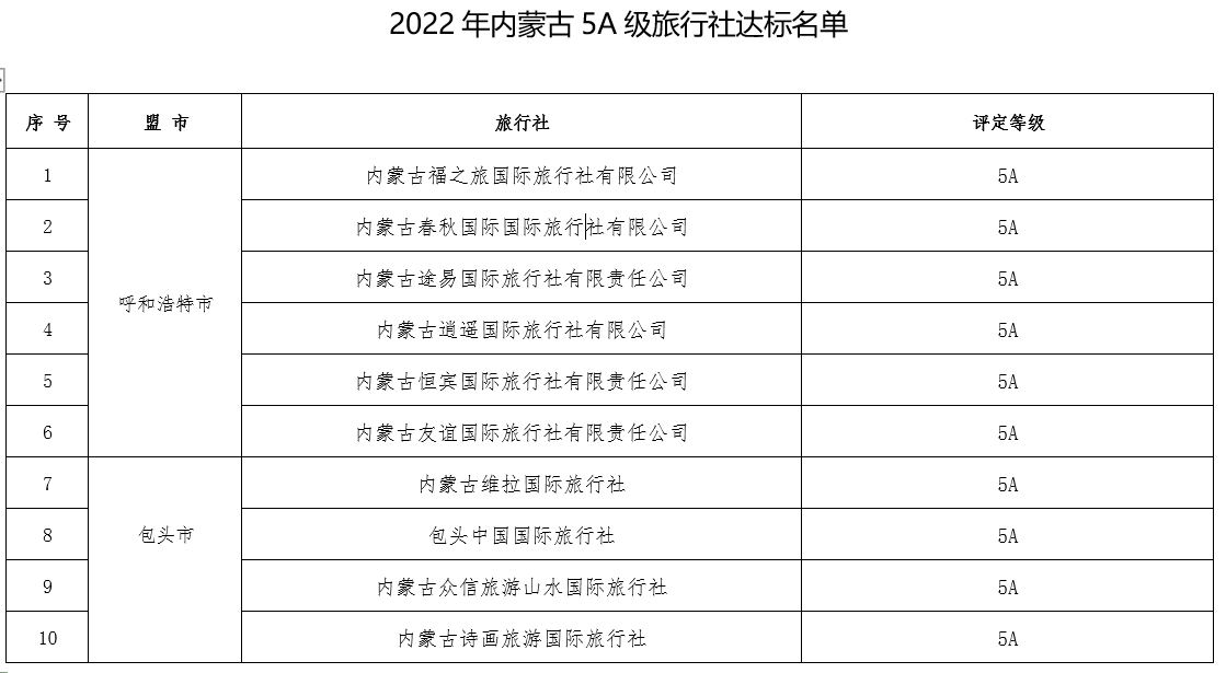 原标题:内蒙古公示2022年4A级以上旅行社评审达标名单