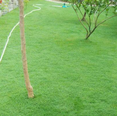 成片的绿草坪因为得到很好的灌溉,所以显得生机勃勃,很有生命力。