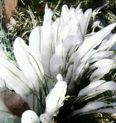 覆盖上厚厚一层冰霜的植被: