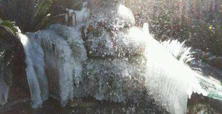 冬天被冻结的鱼池: