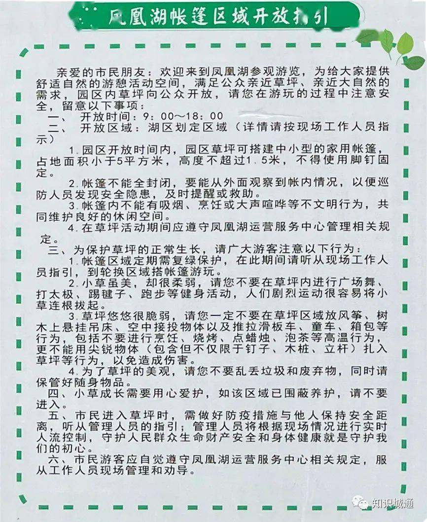 同时在公告版上还有帐篷区域开放指引以及文明公约,开放时间为9:00-18:00,帐篷面积部分小于5平方米。