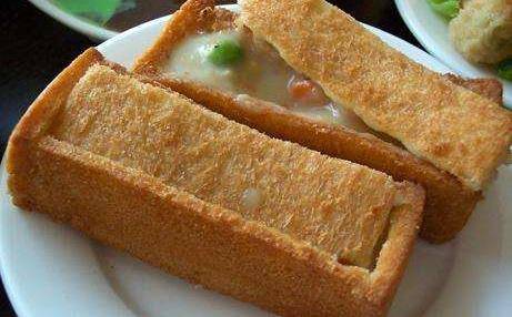 2、棺材板儿。这种小吃是我国台湾地区的一种著名的小吃,有很多的人在听到这个名字的时候都会觉得特别的不吉利,但是这种小吃却特别的好吃,只不过是因为形状看起来有点像棺材一样,不过因为名字听起来不太吉利,所以有很多的人在听到以后都是会拒绝的。