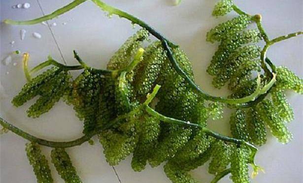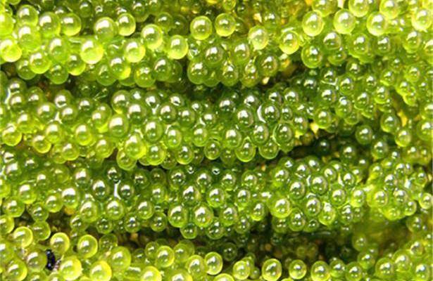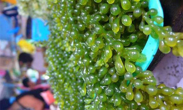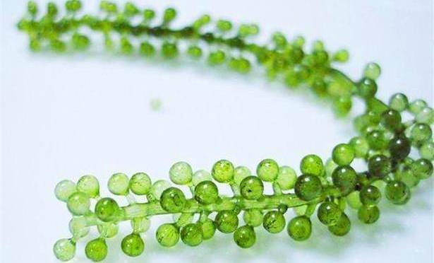 这种水葡萄的学名是“长茎葡萄蕨藻”,虽然看着好看,吃着好吃,但这一粒粒却是它的生殖器。听到这里是不是都有些不想吃了?可是面对这么好吃的水果还是会忍不住。