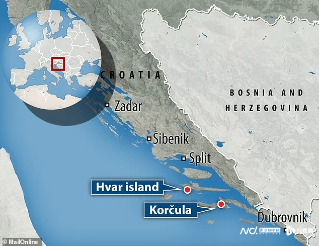 赫瓦尔岛和科尔丘拉岛的地理位置示意图。