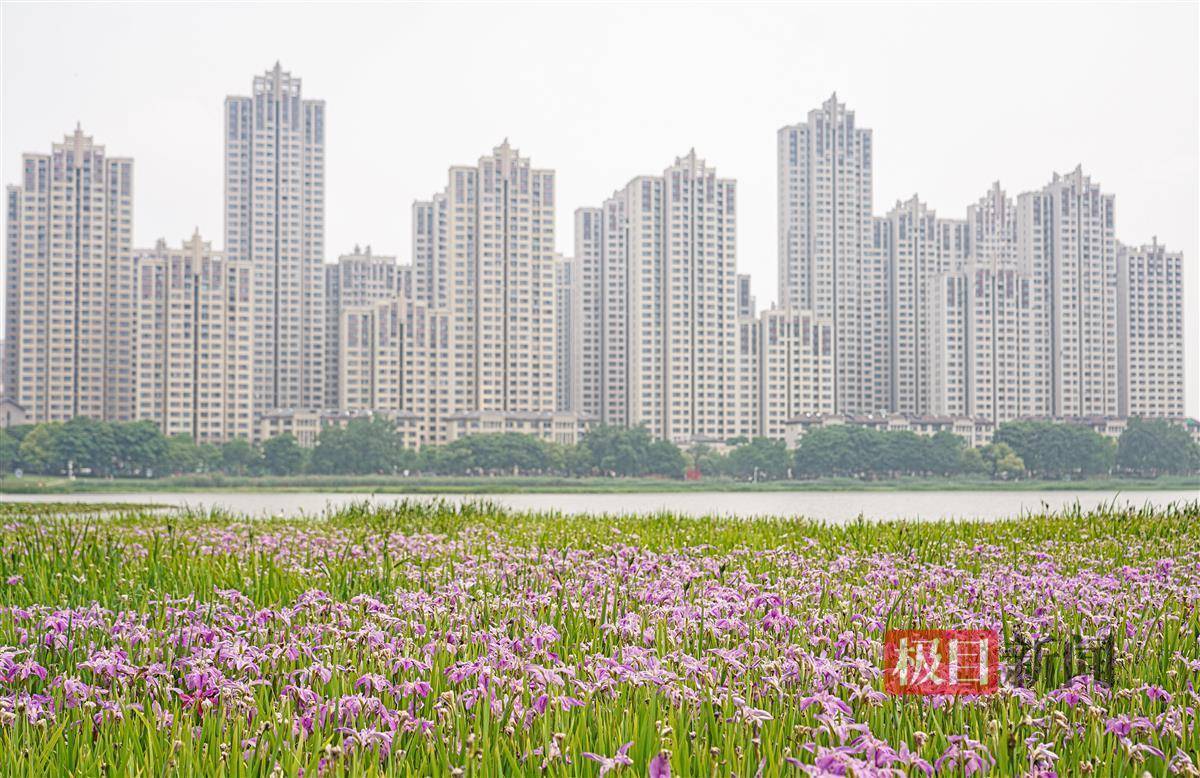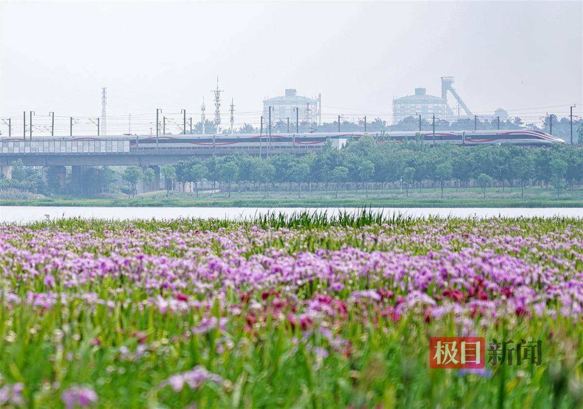 原标题:武汉杨春湖:绽放的鸢尾花和奔驰的动车同框