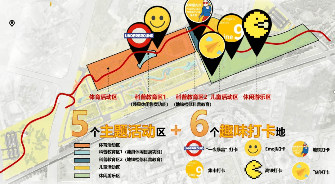 作为天府绿道的重要组成部分,这里打造了以运动和地铁为主题的艺术公园,充分利用场地特色要素,设计出奇趣打卡区、活力运动区,结合高铁线、地铁检修库等,形成具有活力运动的高品质公共开敞空间。