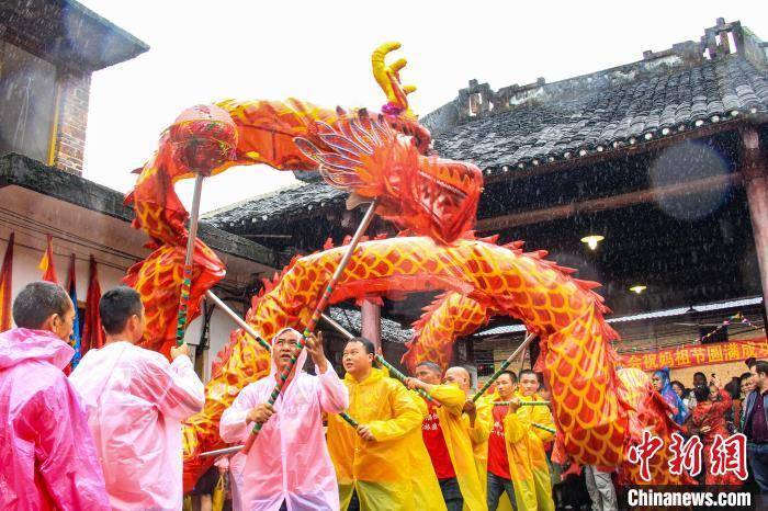 华山舞龙庆祝妈祖节。 杨宗盛 摄