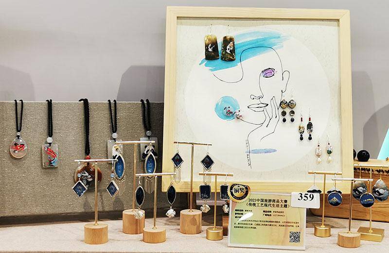 云南获奖作品:唐画诗语的手绘饰品系列。朱静洁摄