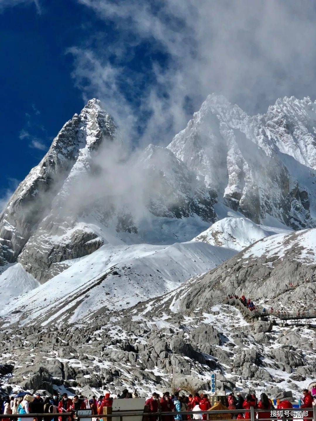 随着时令和明暗的交替,景观也变化无常时而云蒸雾涌,玉龙乍影乍现时而碧天如水,群峰雪光耀眼具有“白雪无古今,乾坤失昏晓”的光辉