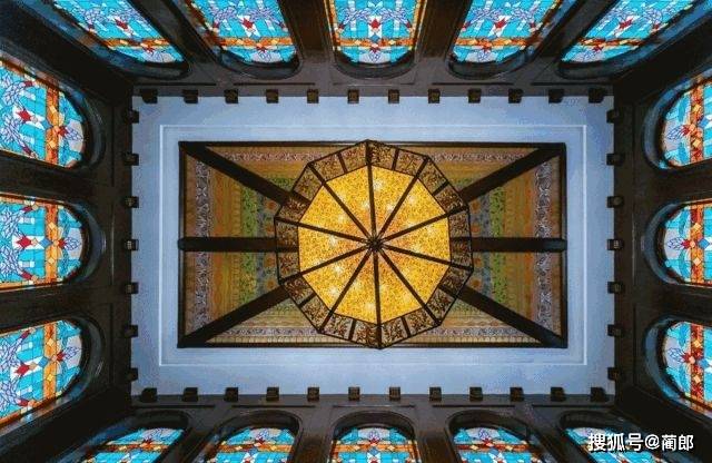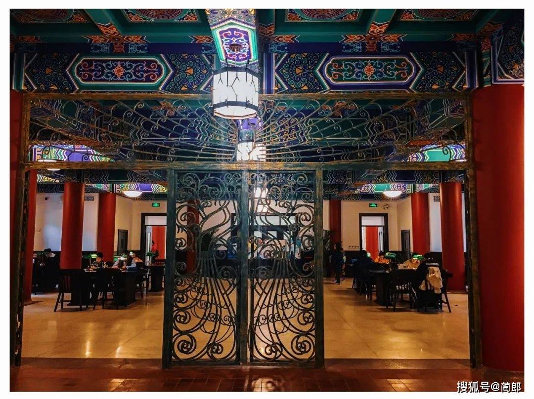 地面红砖铺设,顶上彩绘艳丽,翡翠绿台灯摆设,每一处都令人记忆深刻。