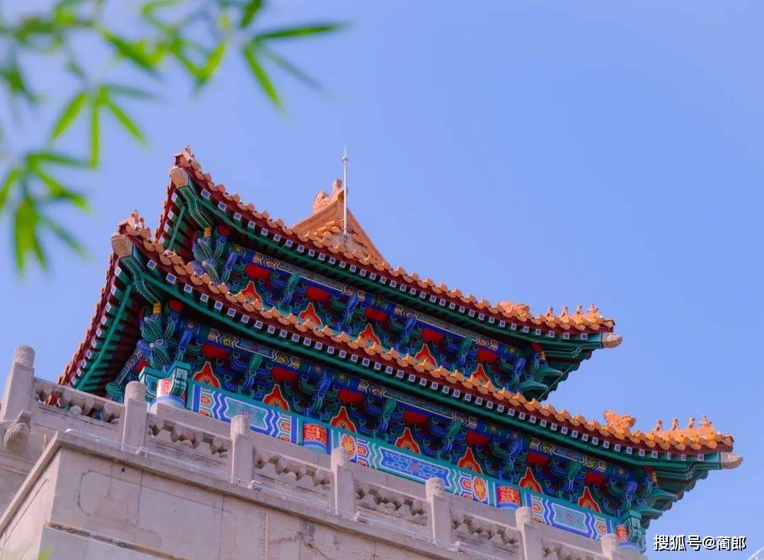 雕梁画栋、重楼飞檐,典型中式建筑,远远眺望,就像一座古城楼,屋檐与蓝天相接,划出优美弧线。