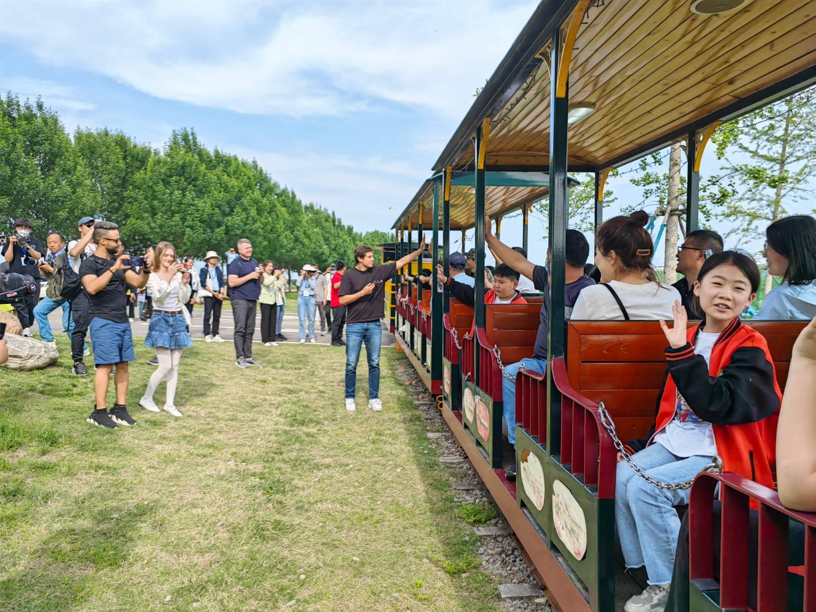 外国网红博主在龙港湾田园综合体研学实践基地与学生们互动