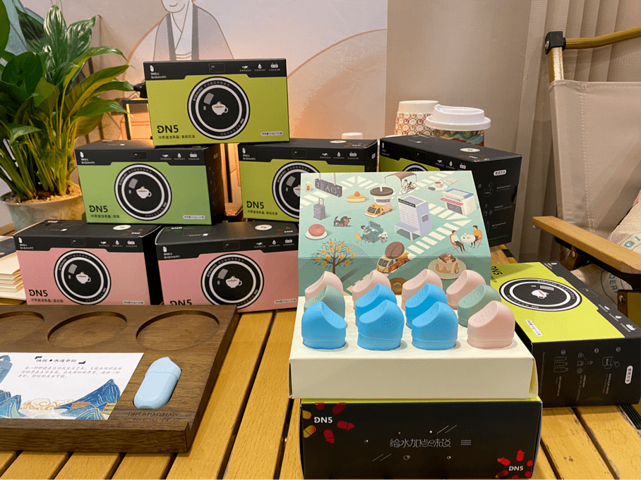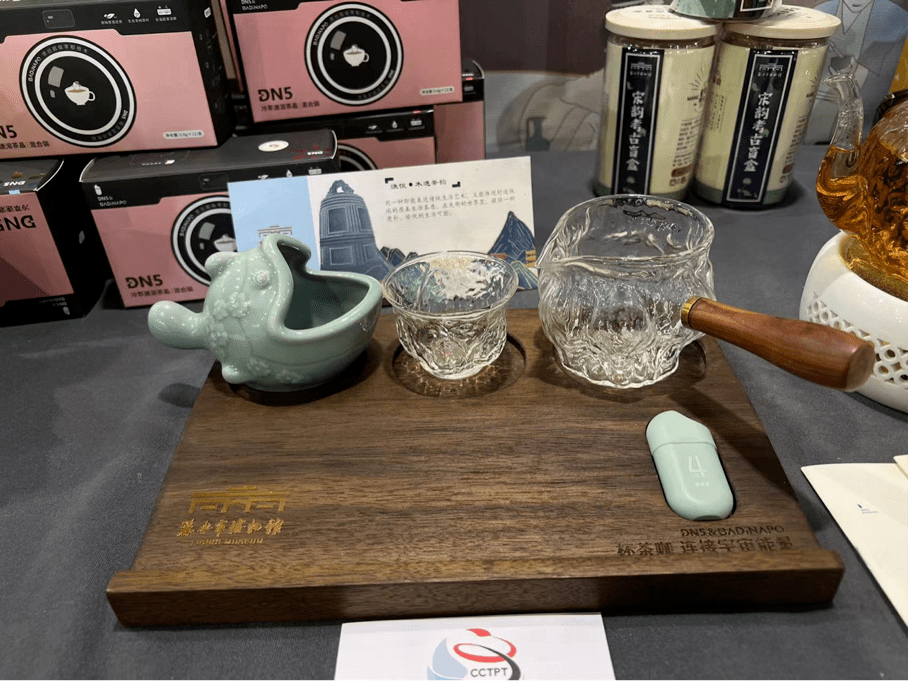 丽水市博物馆与丽水市双渔文化商贸有限公司联合推出的一系列联名文创产品,如:“渔悦·木遇茶韵”、粉兔杯、青釉算珠算盘“如意算盘”、DN5茶饮等,也在本次文交会上大放异彩。