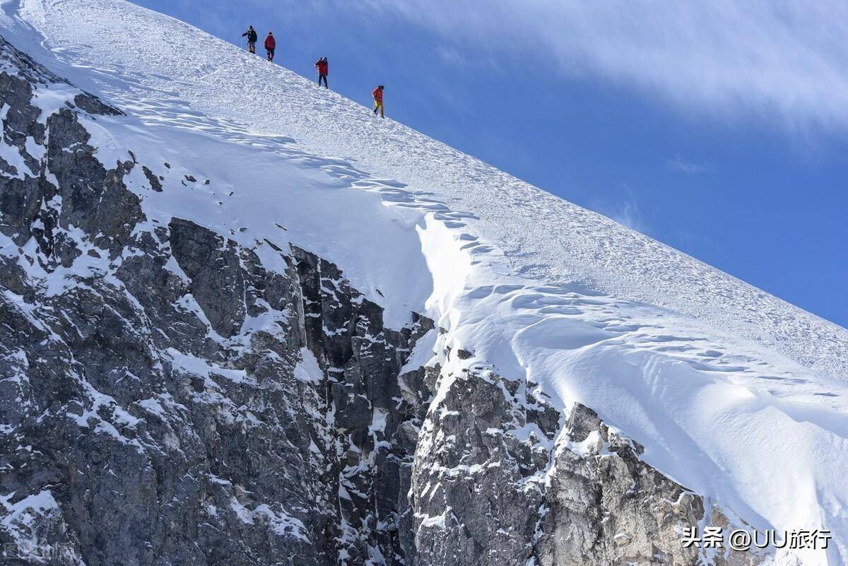 今年最热门的五千米级可攀登的雪山非哈巴雪山莫属。海拔仅有5396米,成为很多人人生的第一座雪山。山下的哈巴村有很多登山经验丰富的向导,同行登山者爬满了雪坡。不需要太多的技术,只需要一些徒步经验,充足的体力,防滑、防水、保暖的装备,基本都能攀登成功。