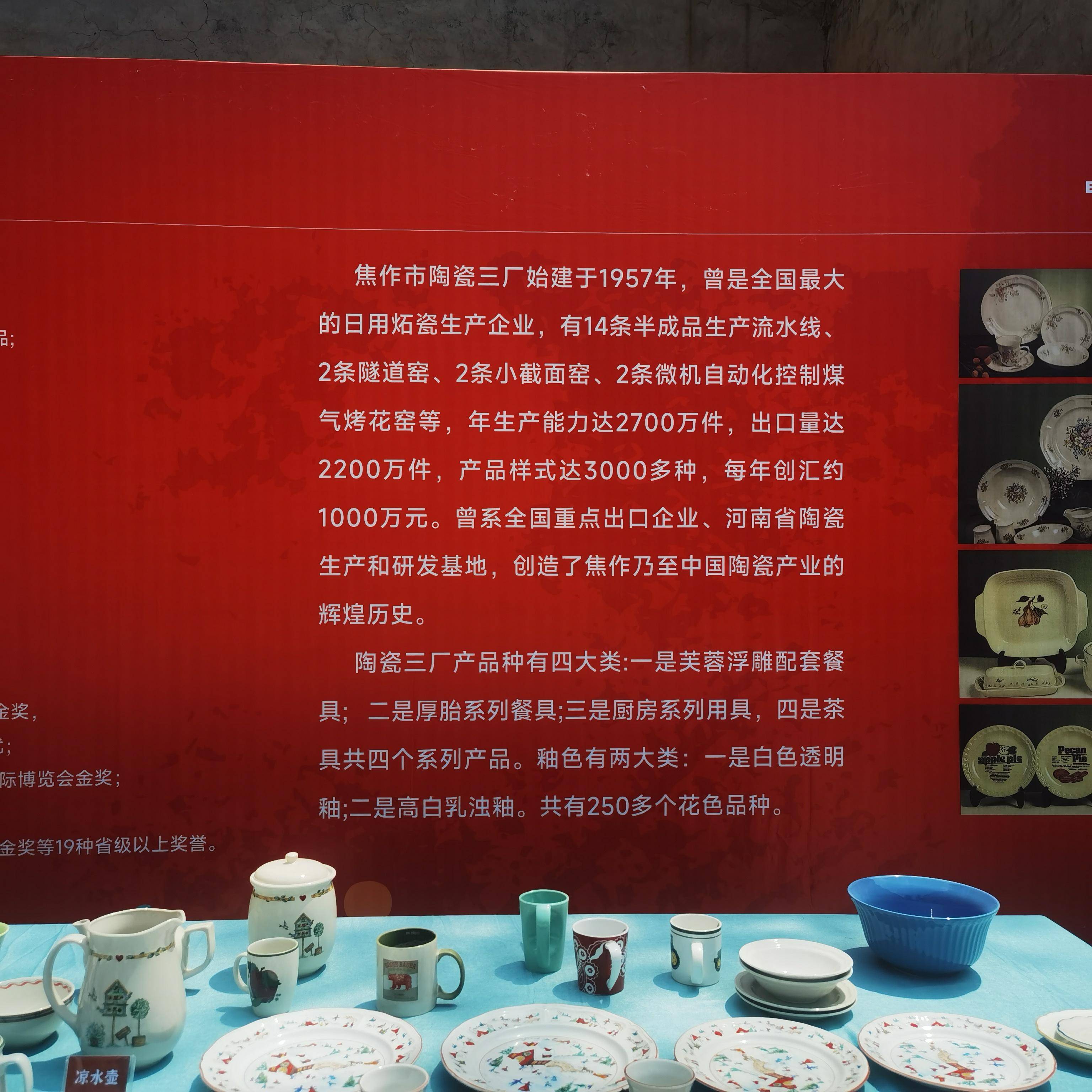 焦作市陶瓷工业文化创意园项目原址为焦作市陶瓷三厂,建于1957年,2008年停产,曾是全国最大的日用炻(shí)瓷(介于陶器和瓷器之间)生产企业、全国重点出口企业、河南省陶瓷生产和研发基地。