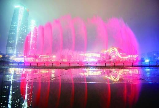 5月10日晚,长沙梅溪湖音乐喷泉与绚丽灯光融合变幻出无穷的水幕,为参加长沙香山旅游峰会的嘉宾带来视觉盛宴。 ■华声在线全媒体记者 李健 摄