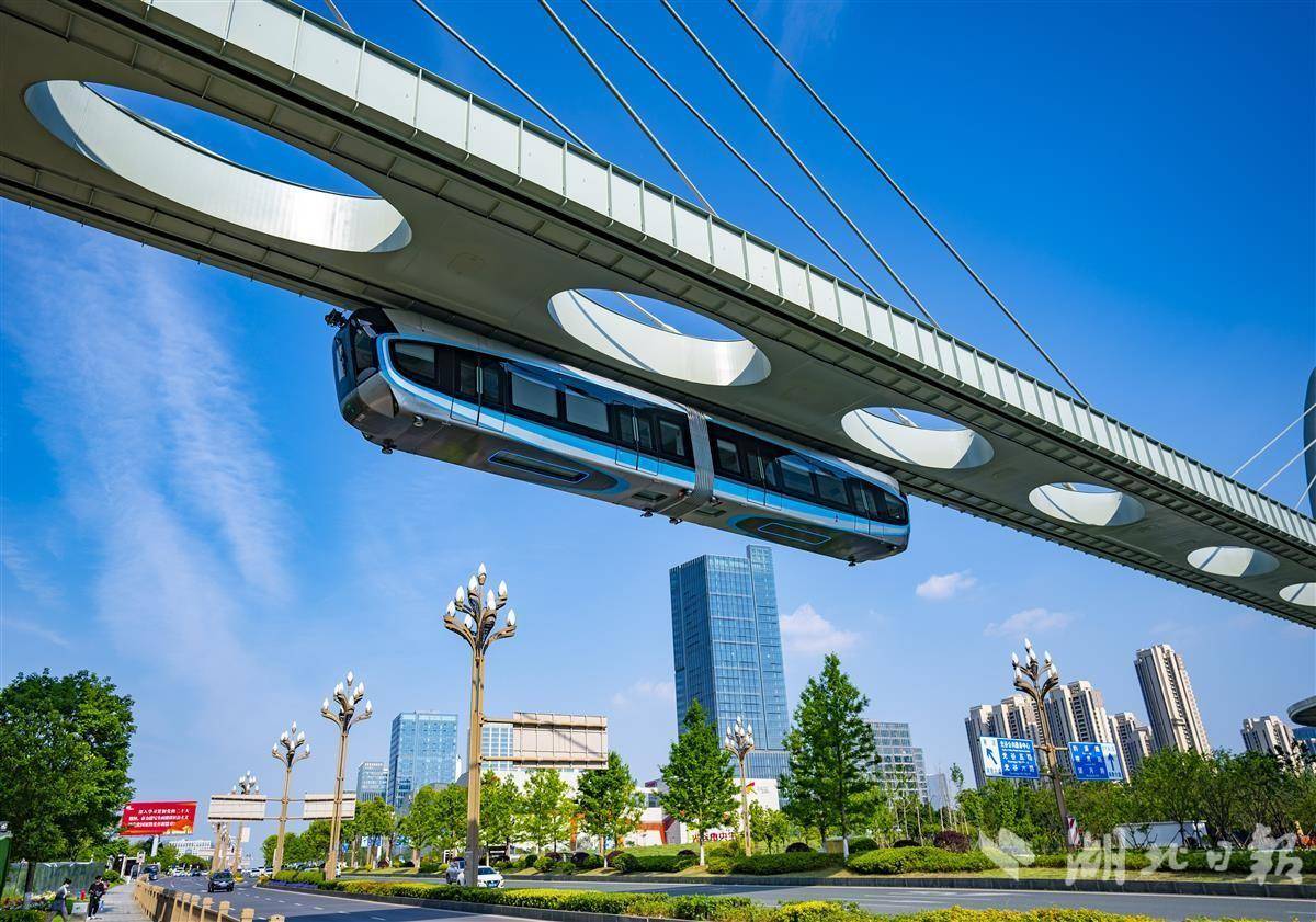 据了解,这是我国首条即将投入运营的空轨,目前正处于综合联调和试运行阶段。