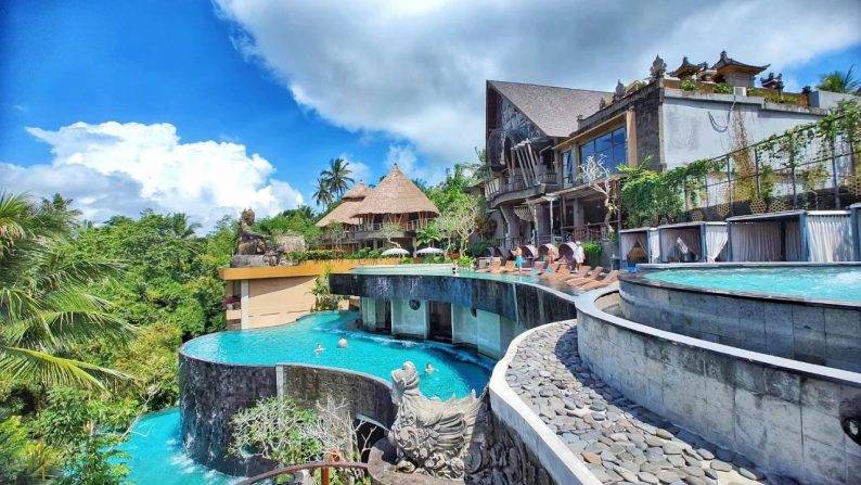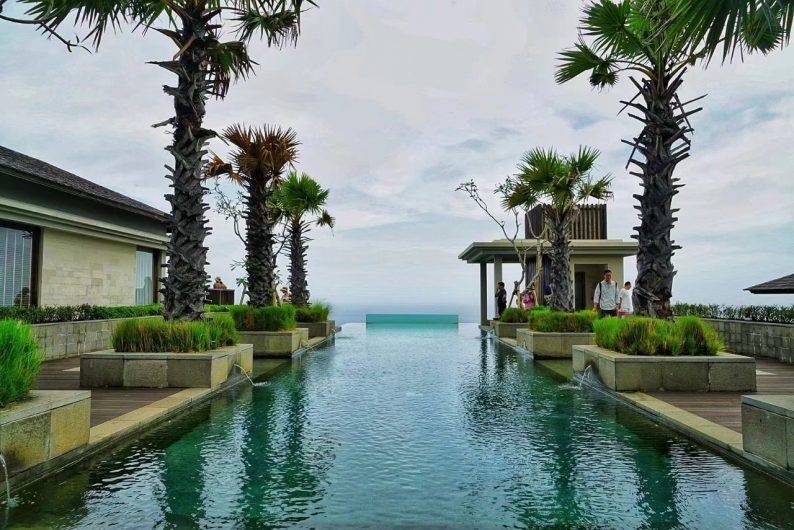 乌鲁瓦图六善酒店则是近期赌王千金何超莲与演员窦骁的婚礼场地。酒店在悬崖峭壁、惊涛骇浪之上,建筑呈阶梯式外观,所有房间均可将印度洋的迷人海景一览无余,不愧是巴厘岛最美悬崖海景酒店之一!