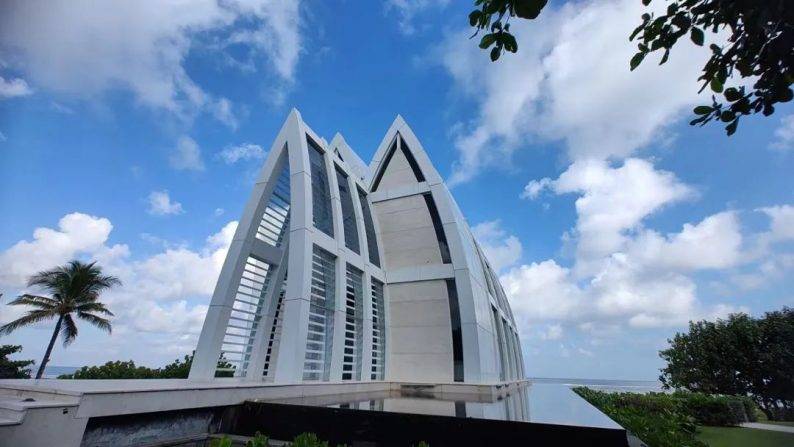 丽思卡尔顿酒店有一座形似莲花的教堂,并蒂莲花茎杆一枝,花开两朵,同心、同根、同福,为吉祥、喜庆的征兆,也被誉为爱情的象征,夫妻恩爱,美满幸福。
