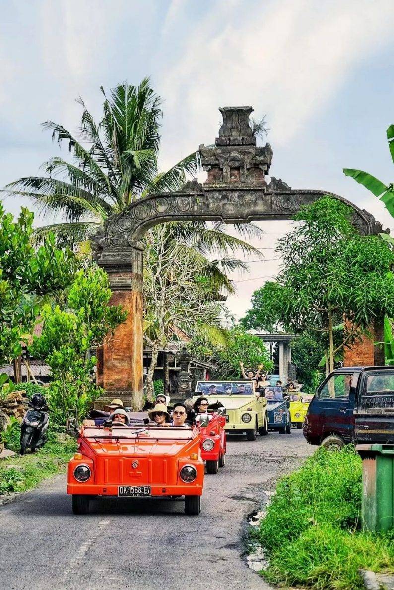 复古敞篷吉普车经过乌布皇宫及集市,穿越了巴厘岛独具艺术气息的乌布地区繁华地带。