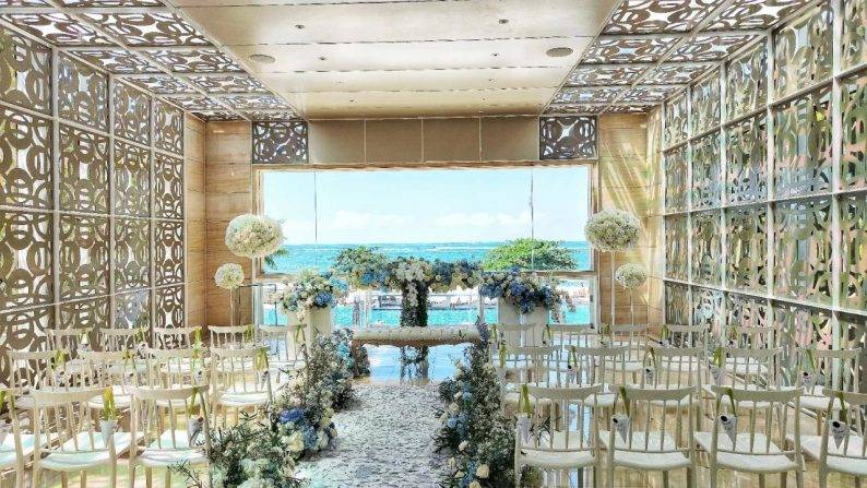 萨玛贝的珍珠教堂采用不规则对称设计,让婚礼充满梦幻般的童话色彩。全透明的水晶教堂可以一览无遗广阔的印度洋海景,让新人在满满的幸福中沉醉。体验悬崖教堂婚礼的别样浪漫,面对蔚蓝的印度洋许下最真挚的誓言,成为一生一世的美好回忆。