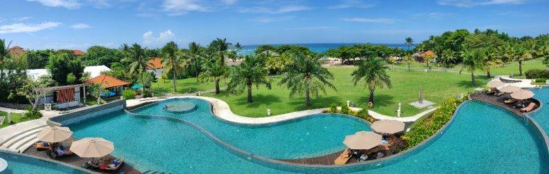 阿雅娜景致优美、远离尘嚣,沿着长达1.3公里的蜿蜒海岸,78幢独栋别墅和一座290间客房的酒店错落分布,构成了这座巴厘最大、最富盛名的豪华酒店之一。