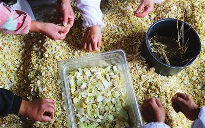 快工也要出细活,分拣菜坯中的杂质也十分考验眼力。