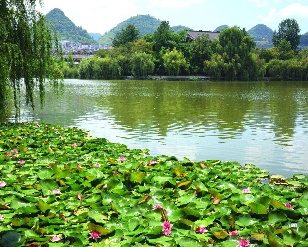 游览六盘水市水上园林【风池园】,景区水景公园湖面面积360亩,其间由涵玉桥、曲桥、玉带桥等石桥跨水相连,湖岸建有回廊、水榭、凉亭等休息处,湖中间有个湖心岛,建有“凤池棋院”,楼台亭阁,古韵幽香,环境优美。