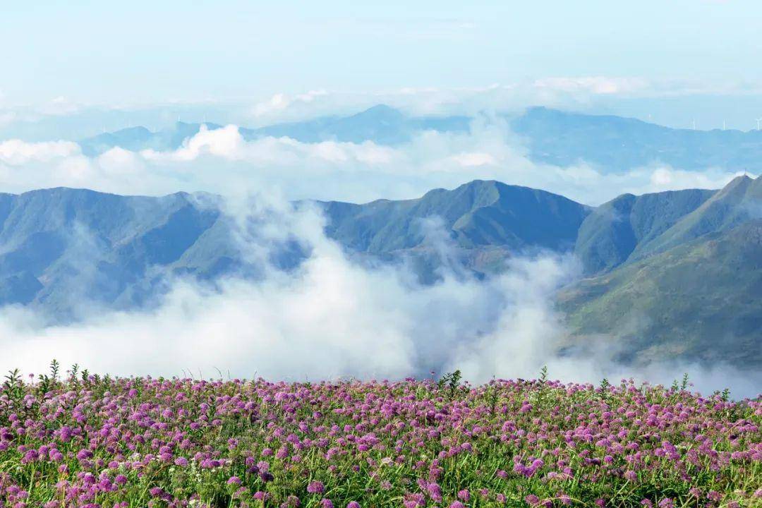 游览世界上最大的野韭菜花带【大韭菜坪--天上花海】,大韭菜坪主峰韭菜坪海拔2900.6米,为贵州最高峰,素有“贵州屋脊”之称,是全国唯一的野生韭菜花保护区,原生态野生韭菜花绵延数万亩,每当韭菜花盛开之际,漫山遍野的紫色球状韭菜花,点缀在万亩绿色的草原之中,灿烂、辽远,令人心旷神怡。