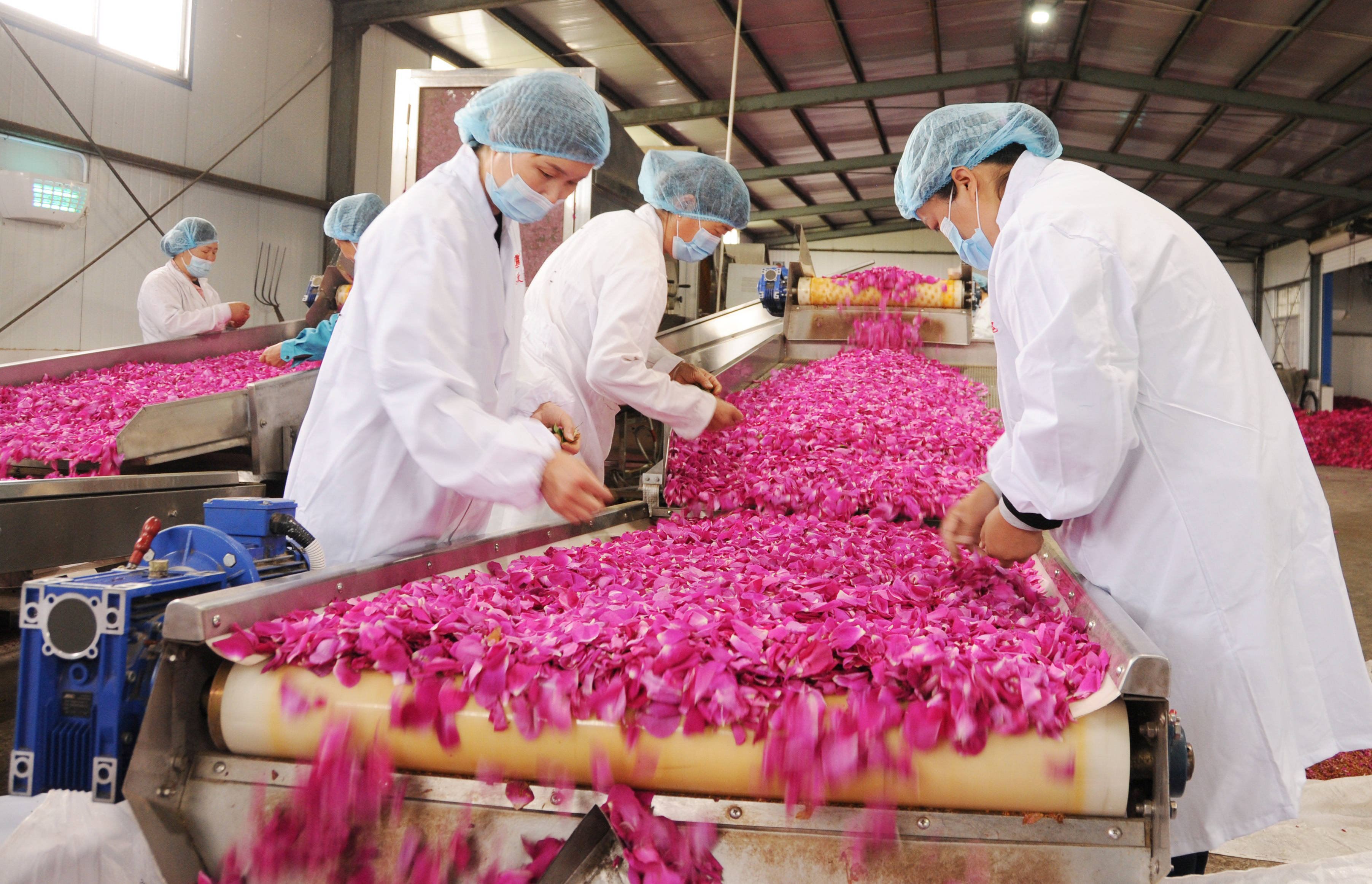 花因时而兴,玫瑰择地而盛。定陶玫瑰种植历史悠久,黄店镇被誉为“中国玫瑰第一镇”,并获准注册“定陶玫瑰”国家地理标志证明商标。该镇玫瑰种植面积达1.26万亩,现有玫瑰加工企业12家,可生产加工玫瑰化妆品、玫瑰茶、玫瑰酱、糖玫瑰原浆、玫瑰糕点等产品,从业人员1.3万余人,从业农户4000多户,花农亩均稳定收入6500元以上,已形成了集培育种植、加工销售、观光旅游等为一体的特色产业链条。玫瑰已成为当地群众增收致富、扩大定陶对外知名度影响力的重要名片。