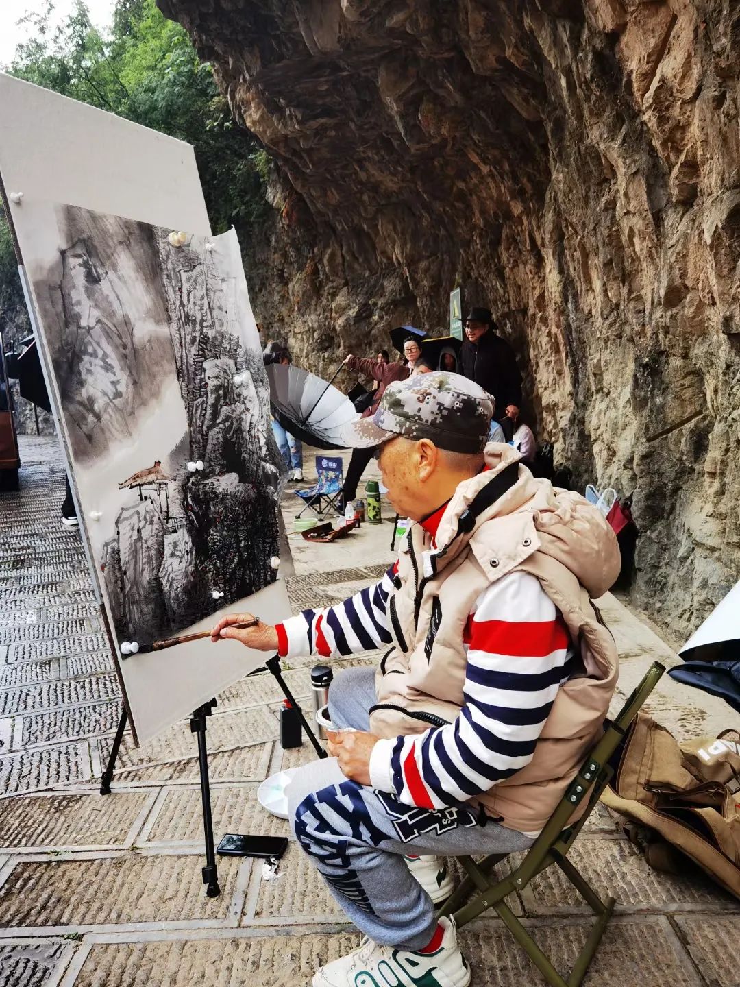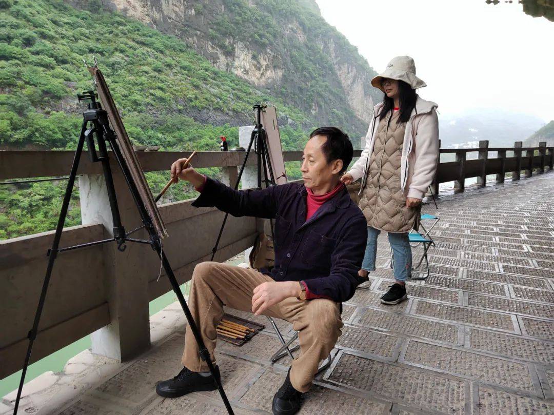 活动中,艺术家们围绕金牛道和嘉陵江水道过境朝天段的蜀道为题材进行了创作。他们先后来到被誉为“中国交通历史博物馆”“古今交通的活化石”明月峡、距今约7000余年的中子铺细石器遗址、地下仙宫龙门阁·雪溪洞等景区采风写生。