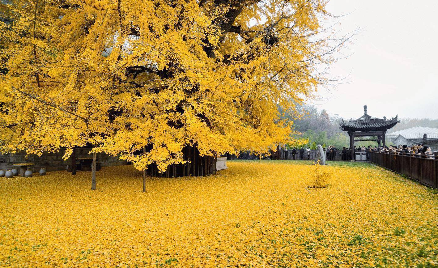 所以对于很多喜欢旅游的人来说,在春天的时候总是喜欢去各个地方寻找生机,在夏天则是喜欢到处寻找一些避暑胜地,到了春季呢,则是喜欢找一些绚烂浪漫的地方。那么这份绚烂与浪漫,不需要别的颜色去点缀,只需要一棵银杏树,或许就能给你想要的一切。