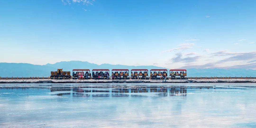 景区里有众多的盐雕可以观赏,还可以乘坐小火车,到盐湖的深处观光。