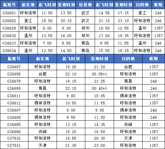 本次新增驻场运力由天津航空投放,将新增执飞呼和浩特=武汉=湛江、呼和浩特=郑州=温州、呼和浩特=青岛=温州、呼和浩特=合肥、呼和浩特=南昌5条区外航线。同时,进一步加密呼和浩特=天津、呼和浩特=锡林浩特、呼和浩特=赤峰航线。加密后,呼和浩特至天津的日均航班量可达4-5班、至锡林浩特的日均航班量可达8-9班、至赤峰的日均航班量可达11班。