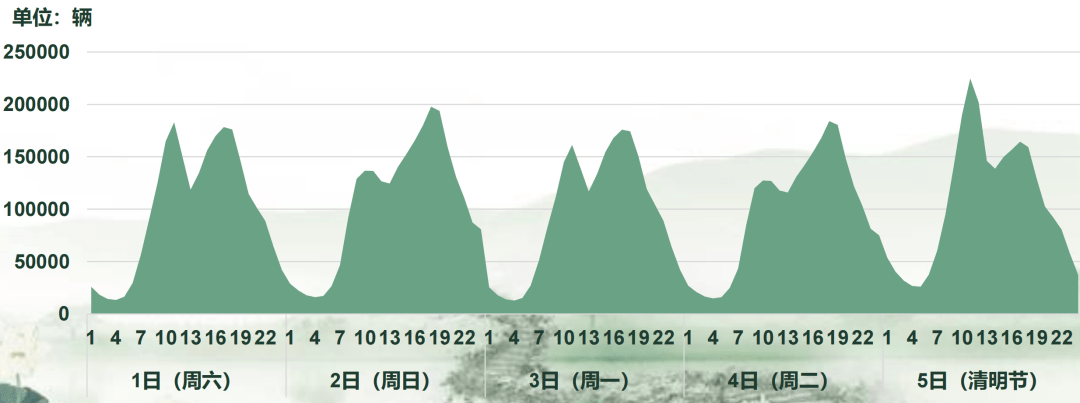 今年清明节实行单日放假、不调休,公众返乡祭扫或将分流至清明前的周六、周日,预计节前高速公路将提前迎来流量高峰,且中短途祭扫出行为主,预计4月1日-5日高速公路日均出口流量约236~254万辆。4月5日(清明节)出口流量将达245~264万辆,流量较往年清明假期明显下降,较2019年同期下降约30%。